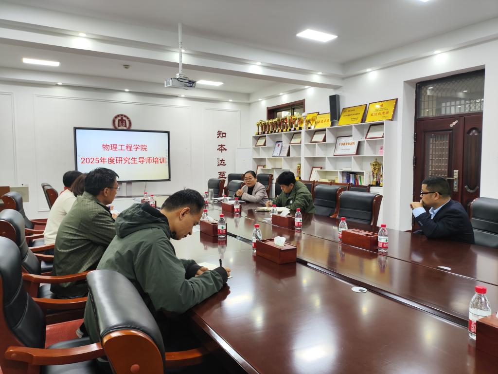 为落实立德树人根本任务,加强研究生导师队伍建设,提升研究生培养质量,10月17日,物理工程学院召开2025年研究生导师培训会。学院副院长刘广强主持培训会,本次邀请2025年山东省优秀研究生导师路洪艳教授做经验分享,学院2025年增选的研究生导师以及近三年入职的教师参加了此次培训。