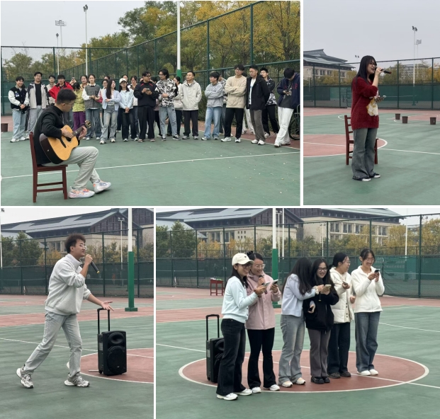 活动开场亮点十足,四支宿舍代表队依次带来特色表演:有的队伍带来吉他弹演,悠扬旋律伴着娴熟指法,尽显校园文艺气息;有的队伍演唱歌曲,用歌声传递青春态度;为趣味运动会奠定了欢乐基调。
