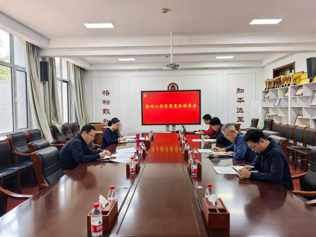 2025年9月25日,物理工程学院在物理楼225会议室召开党政联席会议,学院领导班子全体成员参加了会议。